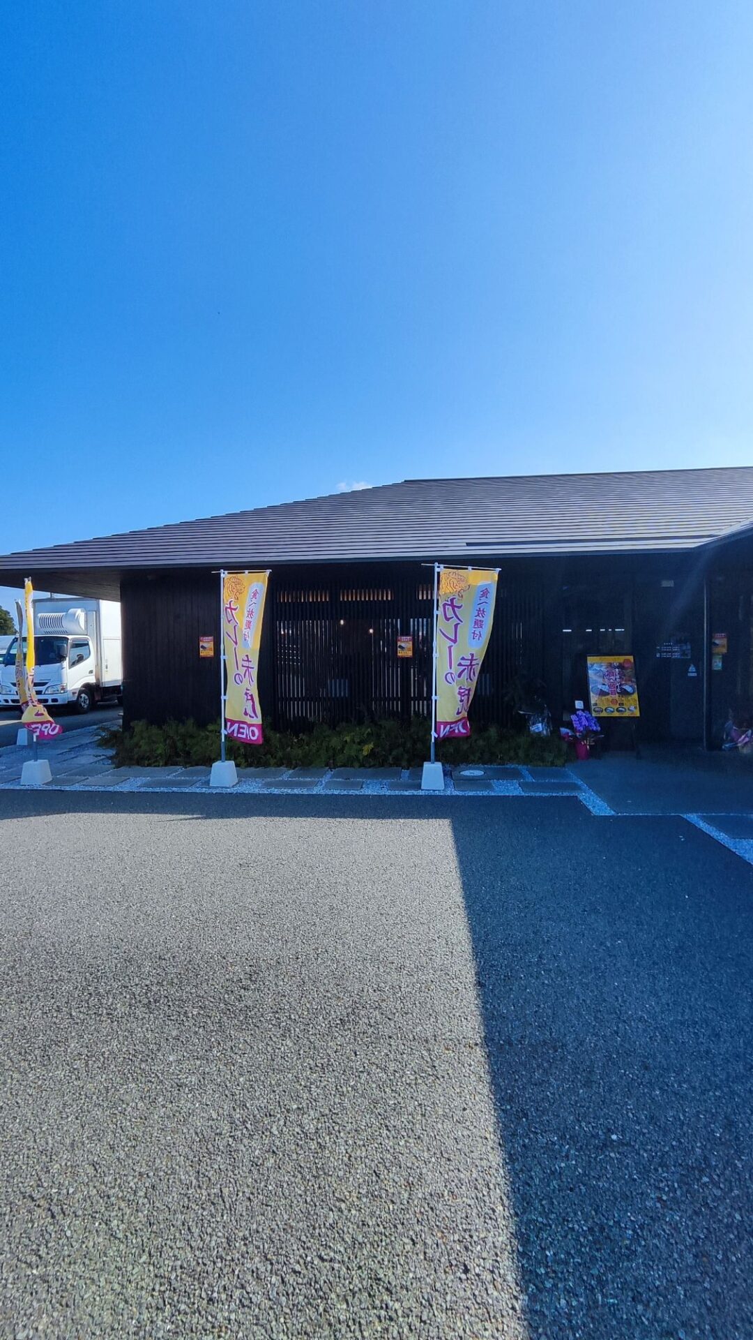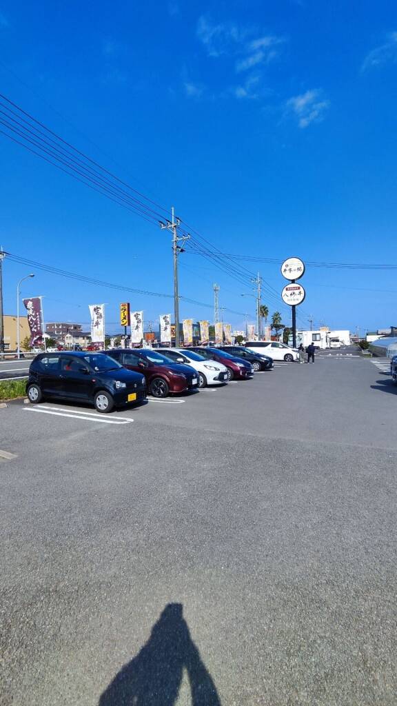 お店の前に50台駐車できる広大な駐車場があります。